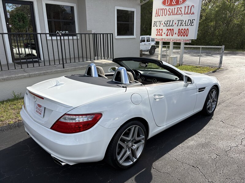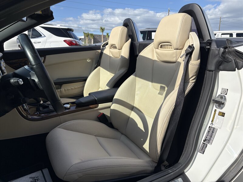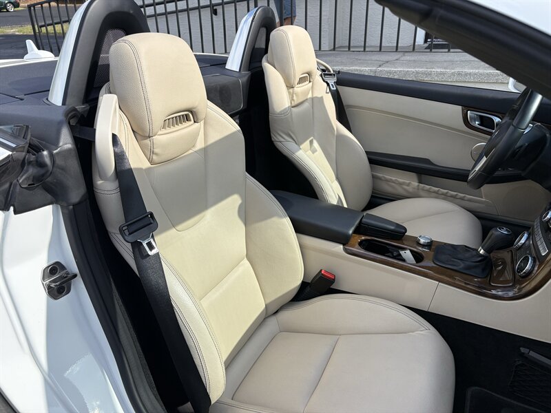 Sporty and refined, this 2015 Mercedes-Benz SLK 250 is powered by a lively 1.8L Turbo I4 with 201 hp and 229 lb-ft, paired to a smooth 7-speed automatic for confident, efficient driving. It arrives with the Premium and Trim Packages plus desirable options: MAGIC SKY CONTROL panoramic roof (variable-tint glass), PARKTRONIC parking sensors, and a Sahara Beige leather interior for a luxurious two-seat cockpit. Factory features include the power-retractable hardtop, a driver-focused sport cockpit with power-adjustable seats, dual-zone automatic climate control, Bluetooth hands-free/audio streaming and USB/AUX connectivity, steering-wheel mounted controls, alloy wheels and projector headlamps. Standard Mercedes safety systems are onboard — ABS, electronic stability and traction control, and multiple airbags — for peace of mind. This SLK has excellent mileage (below 53,000 miles, averaging under 5,000 miles per year), is in excellent overall condition, and comes with a clean CARFAX. Friendly, fun-to-drive roadster ready for summer.