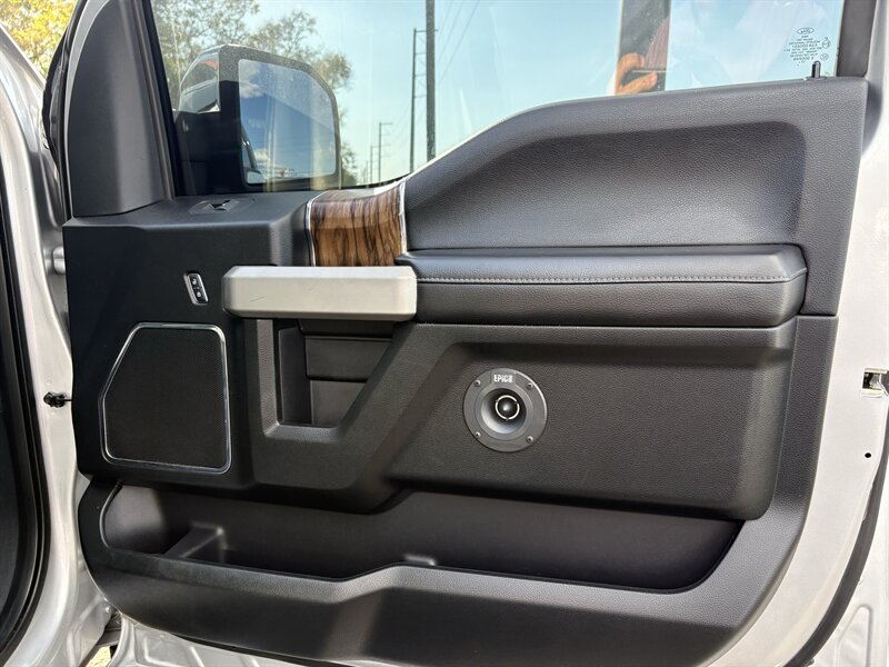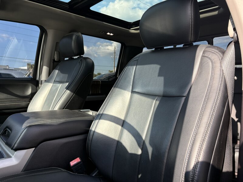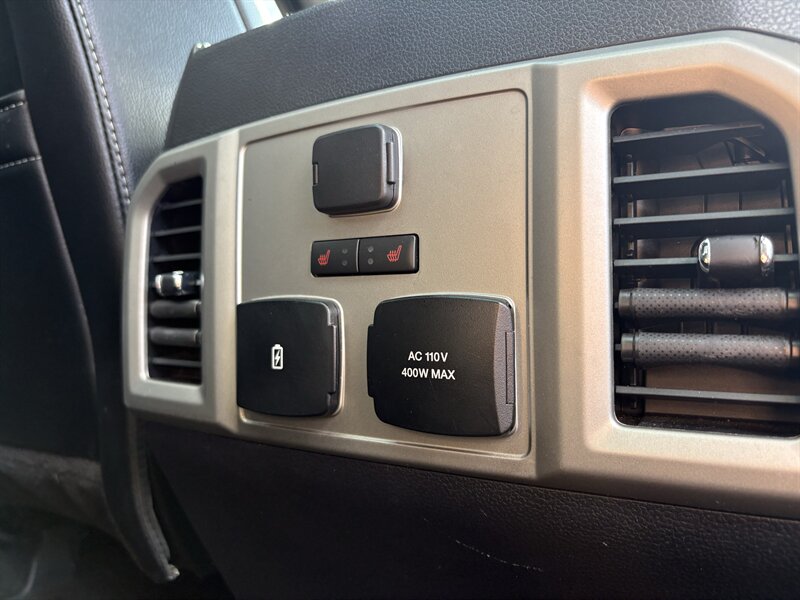 - Equipment Group 502AIncludes vehicle with standard equipment, BLIS (Blind Spot Information System) with Cross-Traffic Alert (BLIS sensor in LED taillamp), remote start system, remote tailgate release, reverse sensing system, quad beam LED headlamps and LED taillamps, automatic high beam lights with rain-sensing windshield wipers, heated windshield wiper park, LED fog lamps, LED side mirror spotlights, power folding, power glass side view mirrors with heat, turn signals, memory, auto-dimming feature on drivers side, high-intensity LED security approach lamps, one 110V/400W outlet (two with bucket seats), universal garage door opener, power tilt and telescoping steering column with memory, heated steering wheel, heated and cooled leather-trimmed bucket seats, 10-way power driver and passenger seats, memory driver seat, heated second row seats, flow-through console with floor shift, B&O PLAY Premium single-CD player, HD radio, SYNC Connect (door lock and unlock, schedule specific time for remote start, locate parked vehicle, and check vehicle status using compatible smart phone), SiriusXM Satellite Radio, voice-activated touchscreen navigation with pinch to zoom capability and SiriusXM Traffic and Travel Link with five years of service in the 8 contiguous United States and D.C., and Lariat Chrome Appearance Package including 18 inch chrome-like PVD wheels, 265/60R18 BSW all-season tires, chrome angular step bars, chrome door handles with body-color bezel, chrome single-tip exhaust, chrome skull caps on exterior mirrors, and chrome three-bar style grille with chrome surround and chrome mesh insert. When Two-Tone Paint is selected, front and rear chrome bumpers are replaced with front and rear accent-color bumpers, and standard body-color wheel lip moldings are replaced with accent-color wheel lip moldings.