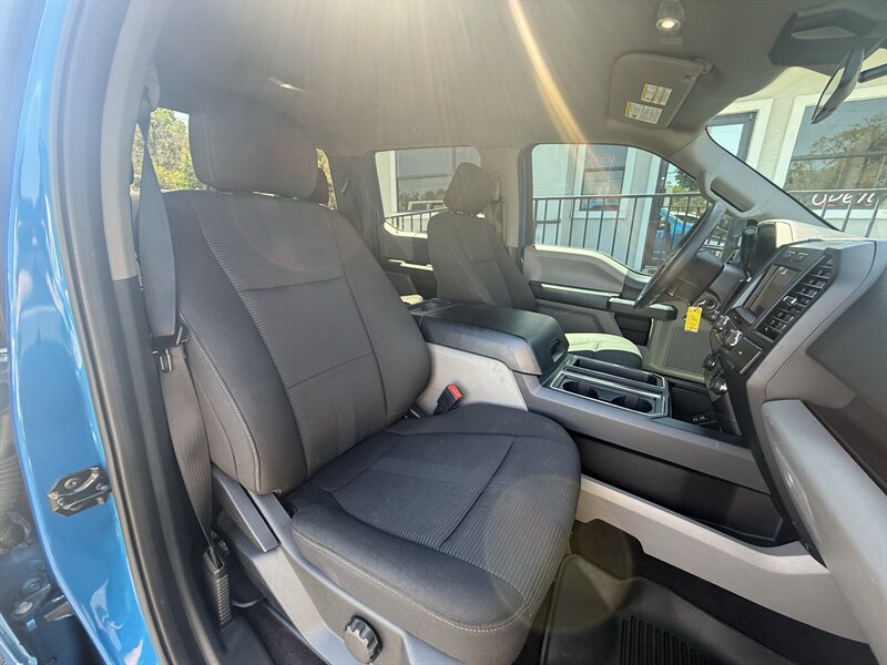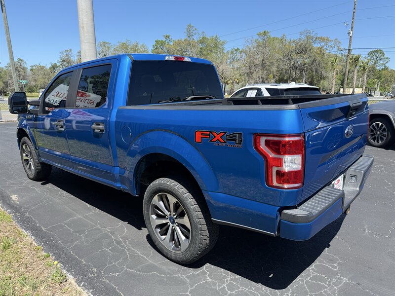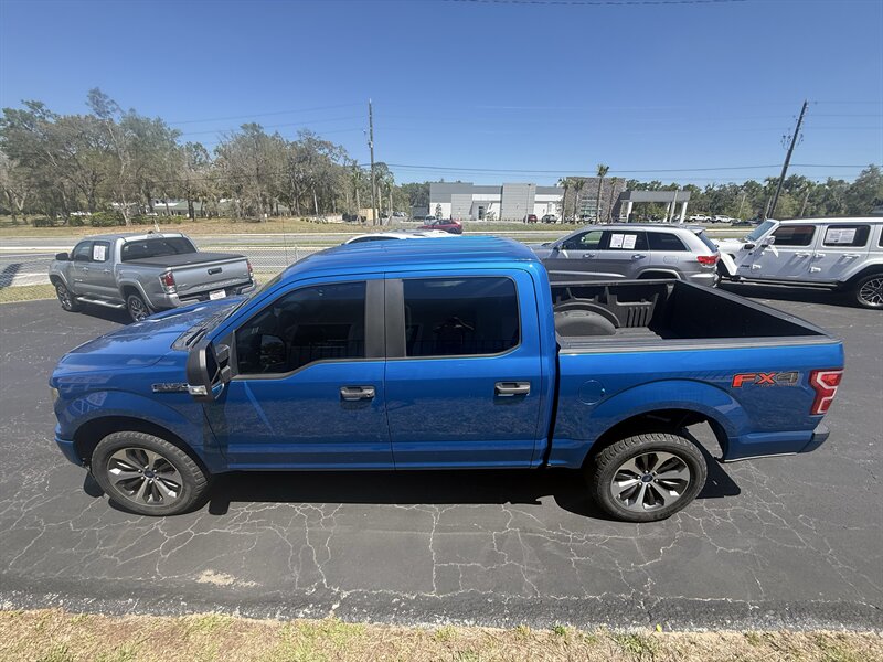 2019 Ford F-150 XL in striking Velocity Blue with Black / Medium Earth Gray cloth — excellent overall condition, one owner and a clean CARFAX. Powered by a 5.0L Flex Fuel V8 with 395 hp and 400 lb-ft of torque, and fitted with a Class IV trailer hitch for serious towing. This truck carries Equipment Group 101A plus FX4 Off-Road, STX Appearance and XL Sport Appearance packages for added capability and sporty styling. Factory features include a rearview camera, ABS with traction and stability control, front and side airbags, tire pressure monitoring, durable cloth seating, air conditioning, cruise control, steering-wheel audio controls, AM/FM audio with Bluetooth and USB connectivity, practical interior storage and a factory pickup bed with tie-downs — all the essentials for work or play.