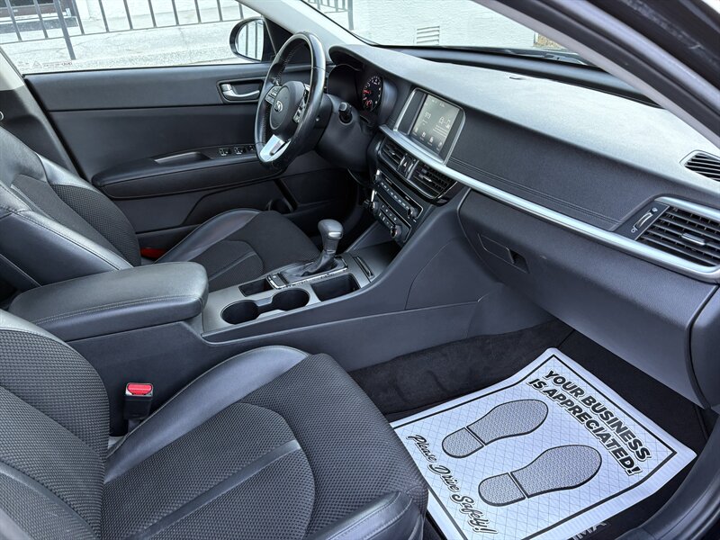 2020 Kia Optima LX — Smart, comfortable midsize sedan with low miles and great value. Powered by a responsive 2.4L inline-4 engine producing 185 hp and 178 ft-lb of torque, this Optima delivers smooth day-to-day driving with plenty of passing power and efficient highway manners. Factory standard features (well-equipped right from the start): - Cloth seating surfaces with comfortable supportive front seats and a 60/40 split-folding rear seat for flexible cargo and passenger configurations. - Intuitive infotainment system with smartphone integration (Apple CarPlay and Android Auto), Bluetooth hands-free calling and audio streaming, and USB connectivity for charging and media. - AM/FM audio system with steering-wheel-mounted audio and phone controls for safer, easier operation on the road. - Power windows and door locks, remote keyless entry, and power-adjustable side mirrors for convenience. - Air conditioning with easy-to-use climate controls for everyday comfort. - Rearview backup camera to help with parking and reversing. - Comprehensive safety equipment including multiple airbags, anti-lock brakes (ABS), electronic stability control and traction control for confident handling in a variety of conditions, plus tire pressure monitoring. - Cruise control and an adjustable steering column for comfortable longer drives. - Practical interior storage pockets, cupholders and a roomy trunk for daily needs or weekend trips. This specific Optima also includes dealer-installed convenience items: Carpet Floor Mats, a Cargo Net and a Cargo Tray—perfect for keeping the interior tidy and protecting the cargo area. Vehicle condition and history: - Excellent overall condition inside and out. - Well-maintained with under 49,000 miles — averaging less than 7,000 miles per year. - Clean CARFAX report for added peace of mind. If you’re looking for a dependable, comfortable sedan with modern connectivity, low miles and a clean history, this 2020 Optima LX is a great choice. Contact us to schedule a test drive or to get more details — we’d be happy to help you make it yours.