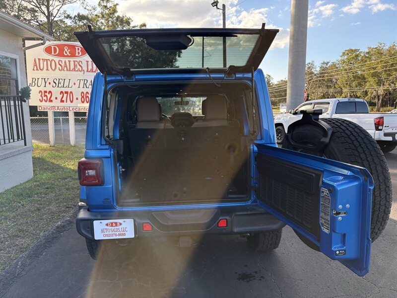 Experience the thrill of adventure with the 2021 Jeep Wrangler Unlimited Sahara, a perfect blend of rugged capability and modern comfort. Powered by a robust 3.6L V6 engine, delivering 285 horsepower and 260 lb-ft of torque, this SUV is designed to tackle both city streets and off-road trails with ease. Step inside the spacious interior, adorned in luxurious Black/Dark Saddle leather, where you'll find premium features that enhance every journey. The 8.4-inch radio and Premium Audio Group will elevate your driving experience, while the Alpine Premium Audio System ensures your favorite tunes sound their best. With the Quick Order Package 24G, Safety Group, and Trailer Tow and HD Electrical Group, this Wrangler is equipped for any adventure you have in mind. The exterior shines in a striking Hydro Blue Pearl Coat, complemented by the stylish 18 x 7.5-inch Tech Gray Machined Face Wheels and LED Lighting Group for enhanced visibility. Take advantage of the convenience of the Sky One-Touch Power Top, allowing you to embrace the open air with just the push of a button. Plus, with the Anti-Spin Rear Differential and Gorilla Glass, you'll enjoy added durability and performance wherever the road takes you. With under 42,000 miles on the odometer and a clean CARFAX report from just one previous owner, this Wrangler is in excellent overall condition and ready for new adventures. Don't miss out on the chance to own this exceptional vehicle that combines style, and comfort.