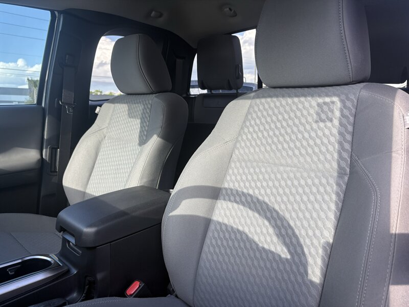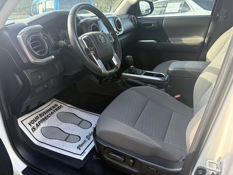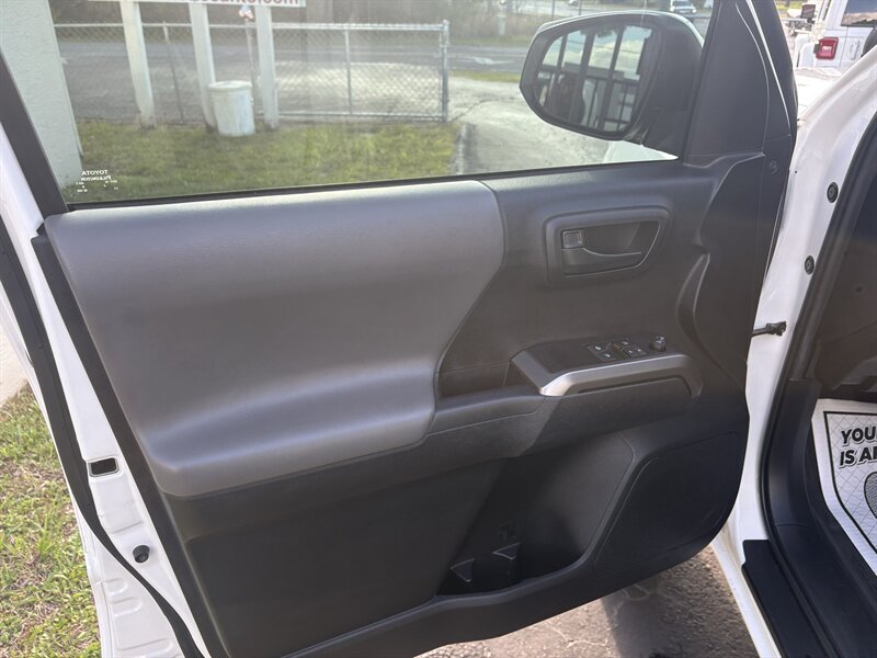 2022 Toyota Tacoma SR V6 with a 3.5L V6 delivering 278 hp and 265 lb-ft of torque — a rugged, reliable midsize truck in excellent overall condition. Factory-standard equipment includes the Toyota Safety Sense suite (automatic emergency braking with pedestrian detection, lane departure alert with steering assist, adaptive cruise control, and automatic high beams), backup camera, ABS with stability and traction control, multiple airbags, a 7-inch touchscreen infotainment system with Apple CarPlay/Android Auto/Bluetooth and USB ports, cloth seats with manual adjustments, power windows/locks, air conditioning, and cruise control. Optional extras on this truck: All-Weather Floor Liners and Door Sill Protectors, Toyota Touch Keypad, and a Bed Mat. Clean CARFAX, under 32,000 miles (averaging <7,000 miles/yr), and rated at 19 MPG city / 24 MPG highway. Friendly, dependable, and ready to work.