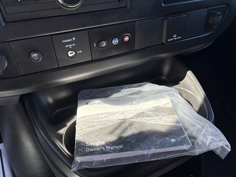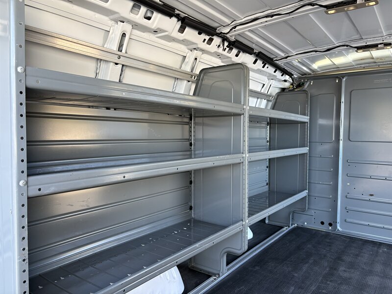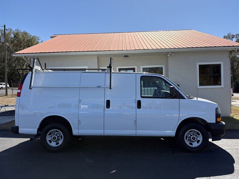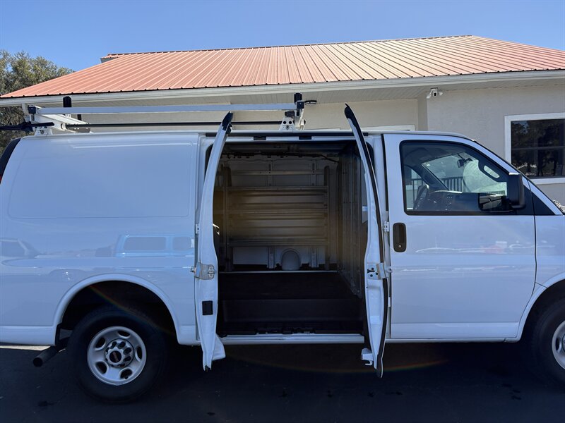 2023 GMC Savana 2500 — excellent overall condition with a clean CARFAX. Powered by the EcoTec3 4.3L V6 (276 hp / 298 lb-ft), this work-ready van includes (3) Adrian Steel shelving, a Driver Convenience Package, PROLIFT ladder roof rack, and Remote Keyless Entry. Factory-standard features include a commercial-grade chassis and suspension for heavy use, four-wheel anti-lock brakes with traction control and StabiliTrak electronic stability control, a rear vision camera, comprehensive airbag protection, tire pressure monitoring, durable vinyl seating and rubberized cargo flooring, air conditioning, cruise control, power steering and door locks, and an AM/FM audio system with Bluetooth and USB connectivity—everything you need for dependable, day-to-day work. Friendly, reliable, and ready to go.