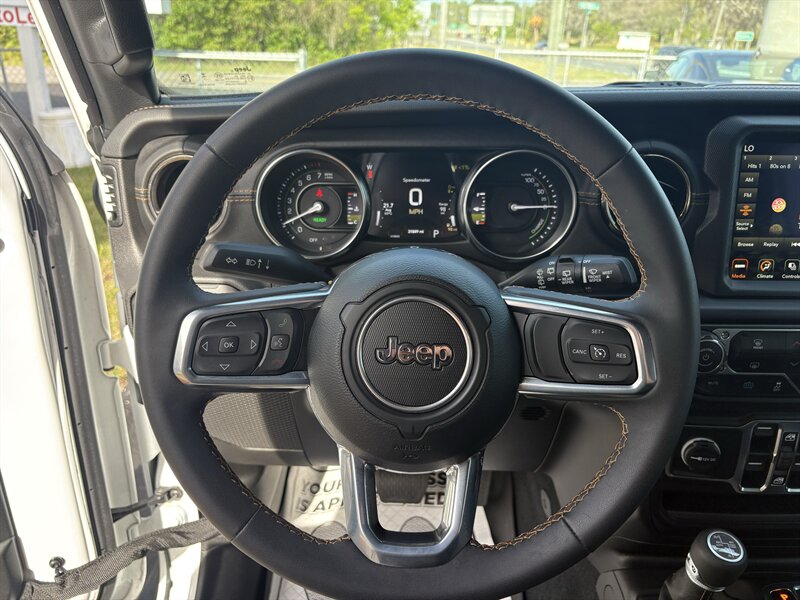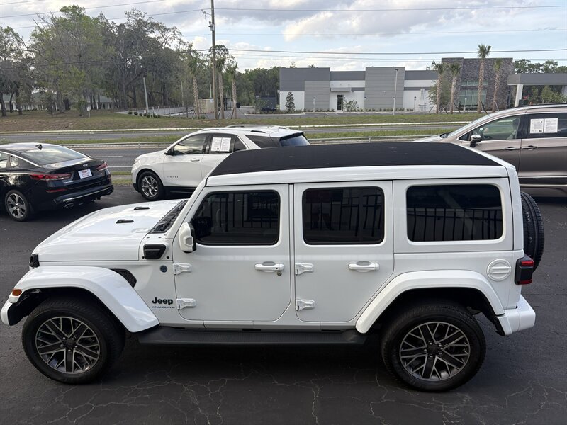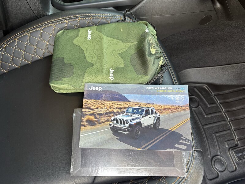 Adventure-ready 2023 Jeep Wrangler Sahara 4xe — powered by a 2.0L plug-in hybrid turbo I4 (375 hp, 470 lb-ft) with an 8-speed automatic and selectable EV/hybrid driving modes. Factory features include full-time 4WD with rugged removable doors and roof, touchscreen infotainment with Apple CarPlay/Android Auto, push-button start, dual-zone automatic climate control, heated leather-trimmed front seats, power windows/locks, LED exterior lighting, rearview camera, ABS, multiple airbags and electronic stability/traction control — and this one also includes the optional Sky One-Touch Power Top. Excellent overall condition, clean CARFAX, one owner, and under 32,000 miles (averaging less than 8,000 miles/year).