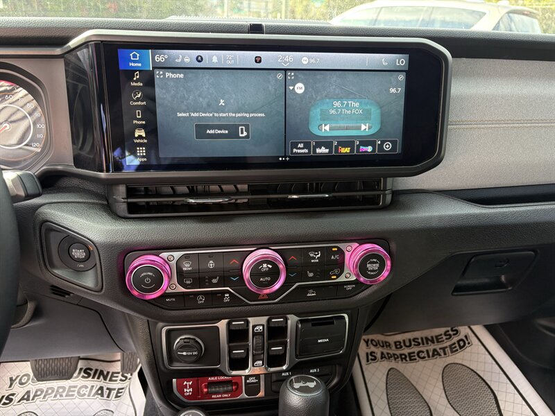 - Power and drivetrain: 3.6L V6 engine with strong low- and mid-range torque for towing and off-road confidence. Four-wheel drive capability and Jeep’s proven Wrangler architecture give you traction and composure where it counts.
